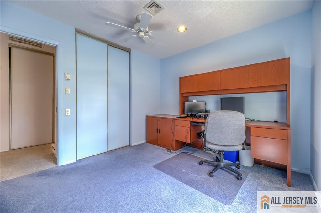 WELCOME TO CLEARBROOK, a gated, easy living 55+ community with amenities galore! No more worries about roof, yard, and exterior home maintenance -- it's all done for you! This attractive, end-unit ranch is a bright, comfortable, 3-bedroom, 2 baths with an additional room built onto it as an actual den (not a sunporch) by a contractor in 1995, making it one of the largest Braeburn 3 models in the area. Through the front, you enter the roomy living room, with dining area just beyond on the left and open to a nicely appointed kitchen on the right, with den access in back, and sliders opening to the private patio. Off the right side of the living room is a long hall featuring laundry closet, linen closet and the full hall bath. Three bedrooms are accessed from here -- the primary bedroom with attached full bath and ample closets, another bedroom with its own very generous closet, as well as a smaller 3rd bedroom which also functions well as an office, being fully wired for technology. There are good quality ceiling fans in each bedroom as well as the living room and den. The back patio offers unique privacy, with trees and shrubs, a partial 6-ft fence,and aSunsetter motorized awning providing cool shadeon a hot summer day.There's a pleasant amount of open space in the backyard and between homes. A sprinkler system, installed by owners throughout the yard, promotes lush seasonal growth. WAIT -- AND THE GARAGE IS A FABULOUS WORKSHOP, a fully insulated and heated space with sheetrocked walls and ceiling, lots of electrical outlets, lighting, shelving, a tall closet and, uniquely, a roomy attic storage space. Clearbrook offers a full schedule of activities and events year round, with lots going on at the clubhouse and cultural center, pleasant open spaces for walking. Convenient to shopping, medical offices; close to Cranbury and Princeton. This home was very loved and well cared for. DON'T MISS THIS ONE!!!!